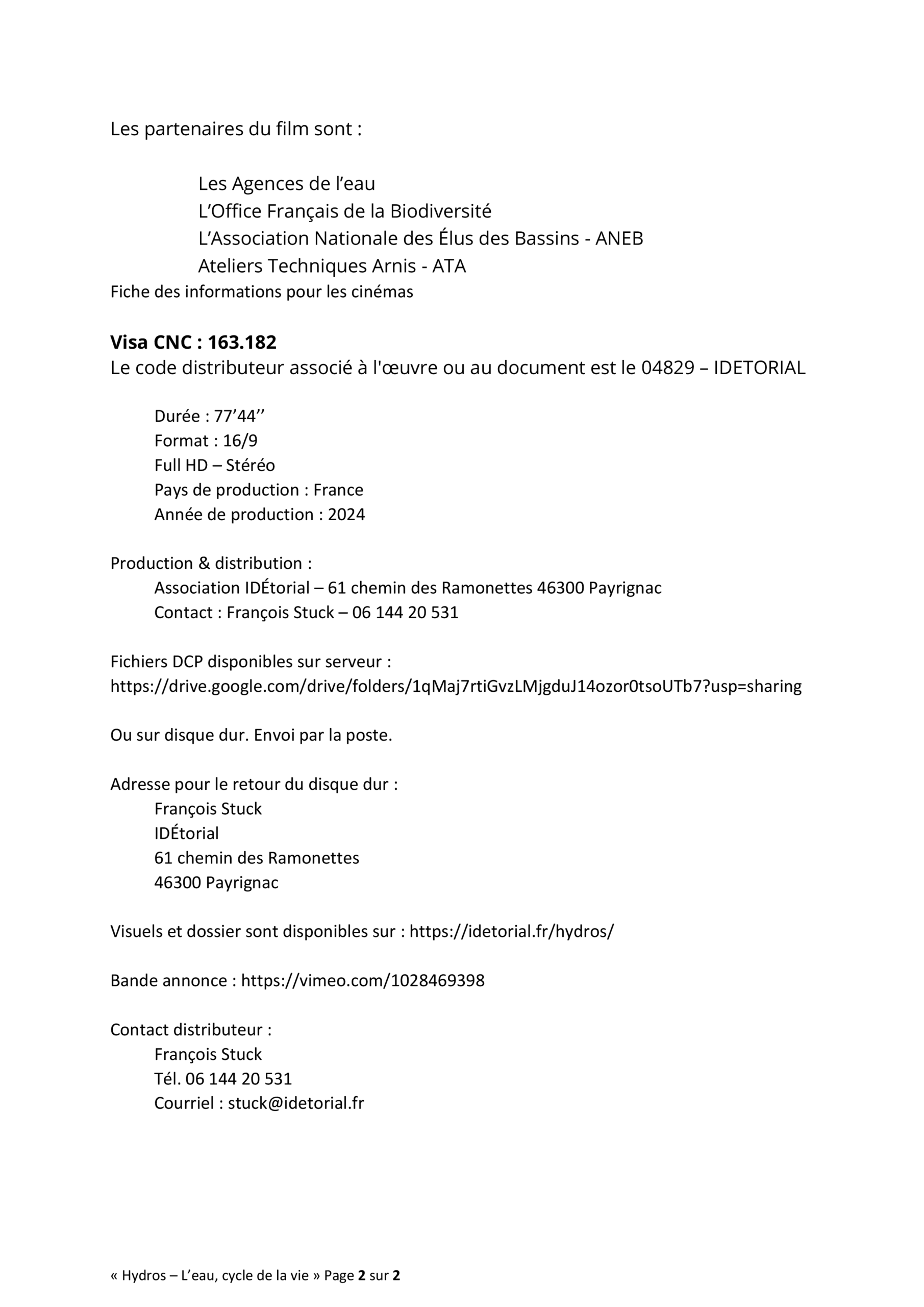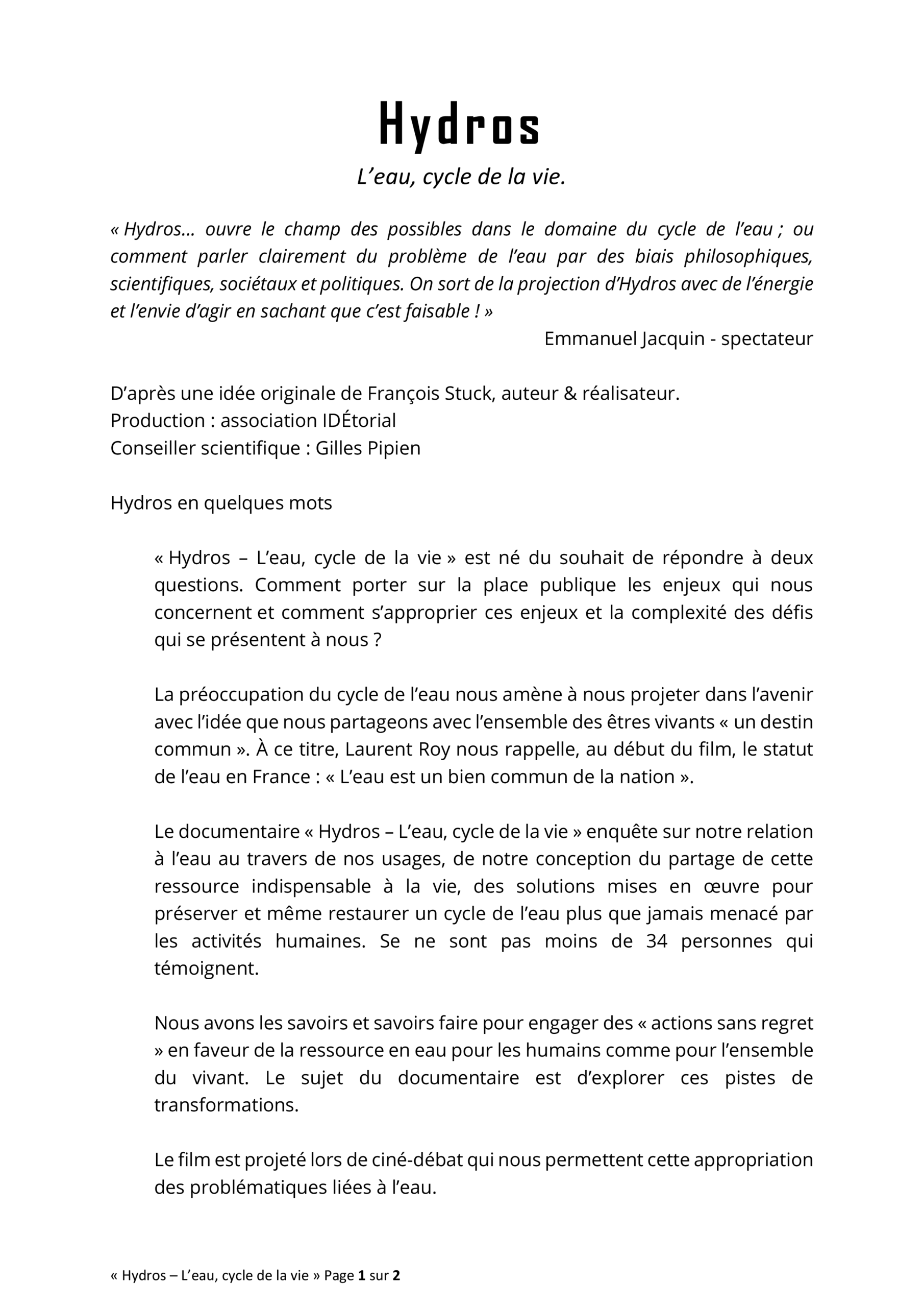 Le documentaire "Hydros - L'eau, cycle de la vie" sera projeté au Cinéma Louis Malle le Vendredi 28 Novembre à 20h30 !