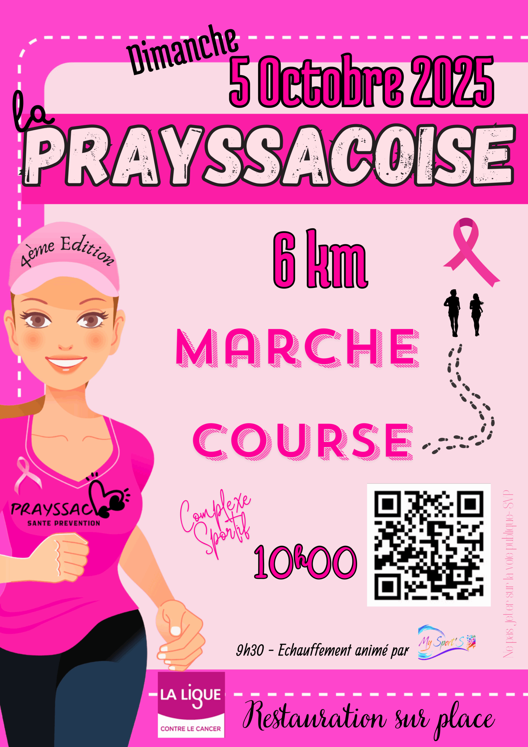 La Prayssacoise est une marche-course chronométrée organisée au profit de la lutte contre le cancer du sein. Ouvert à toutes et tous, cet événement allie sport, prévention et solidarité dans une ambiance conviviale.
