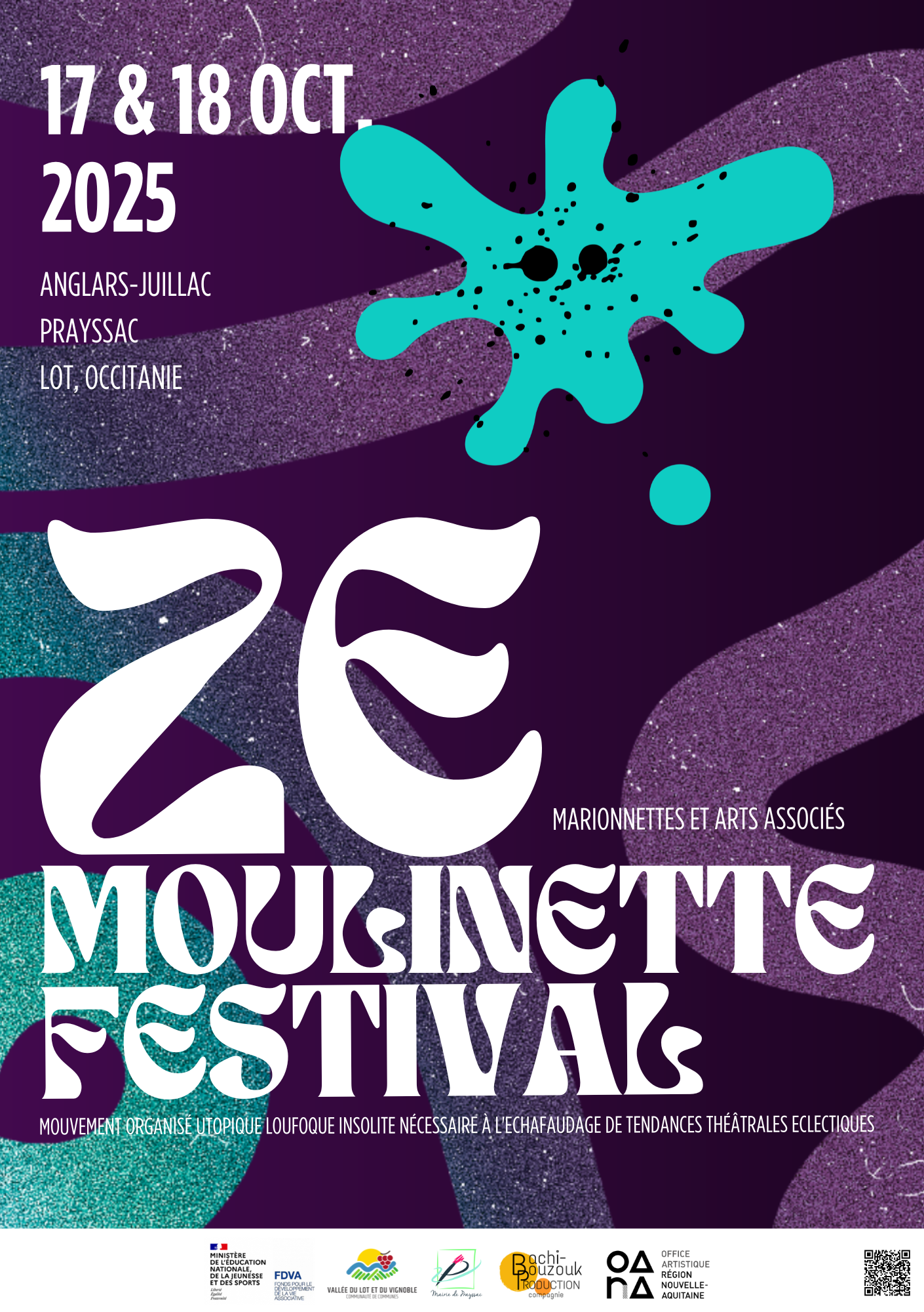 📅 Rendez-vous le vendredi 17 et le samedi 18 octobre, au début des vacances d’automne, à la scène d’Anglars, l’Espace Maurice Faure et sous la Halle Sportive (village du festival) à Prayssac, pour découvrir la marionnette dans tous ses états, à travers une programmation riche, inventive et accessible à toutes et tous !
